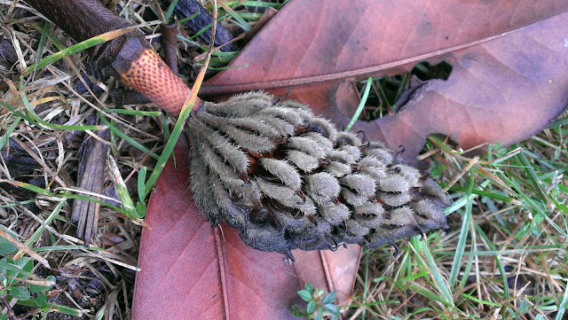 compared to last week's drier, warmer temps, this week has been cooler and much, much wetter. last class found me wandering the grounds in search of signs of fall, this week i got my shoes wet investigating a magnolia tree.
